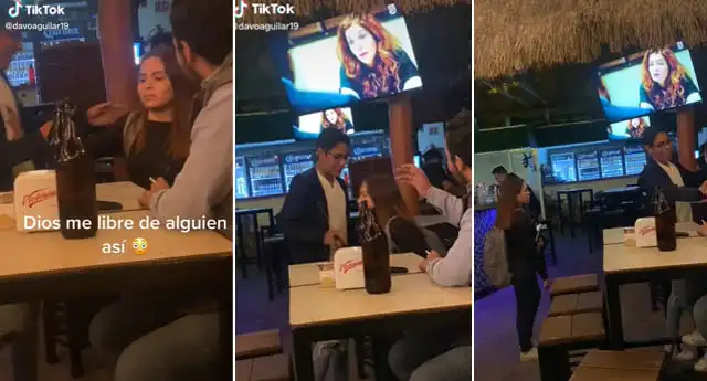 En TikTok se ha vuelto tendencia un video protagonizado por una pareja en un bar ¿La razón? El tenso momento que se vivió cuando la mujer encontró a su novio con un hombre en el establecimiento nocturno.