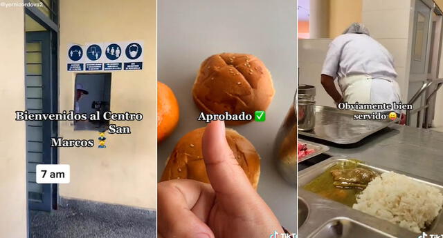 Ese fue el caso de una joven que compartió un singular video de lo que sirven en el comedor de San Marcos. En las imágenes virales de TikTok se observa lo que come en el desayuno (panes, avena y fruta) y almuerzo(seco de pollo, ensalada rusa, fruta y bebida).