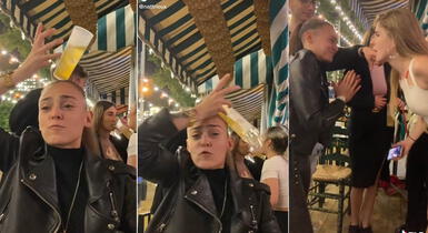 En las imágenes virales de TikTok se muestra cómo la joven deja caer la bebida por error y empapa a uno de las asistentes en el establecimiento. Muy avergonzada, pidió disculpas, pero la afectada tuvo inesperada reacción. “No pasa nada, no pasa nada”, indicó.