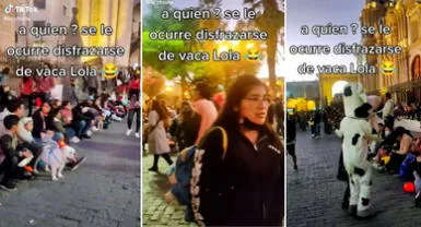 Señor se robó el show en plaza de Arequipa tras disfrazarse de la Vaca Lola por Halloween y es viral en TikTok [VIDEO]