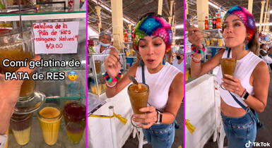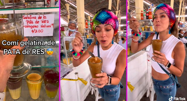 En el video viral de TikTok se puede ver el preciso momento en que Odemaris Ruiz se encuentra caminando por el conocido mercado San Pedro, cuando de pronto decide detenerse al ver un pequeño cartel donde se ofrece gelatina de pata de res.