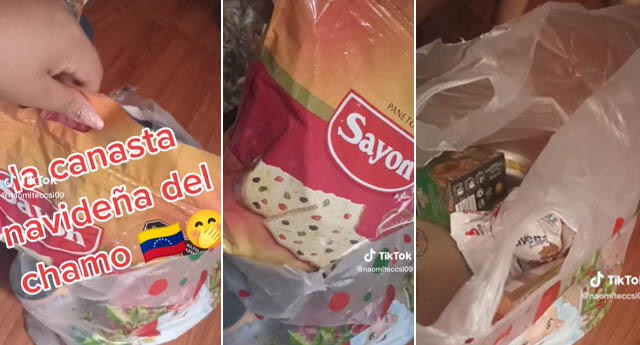Según el clip de la usuaria @naomiteccsi09, el trabajo del padre de sus hijos les dio una canasta con diversos productos. “La canasta navideña de mi chamo”, se lee en la descripción del material audiovisual.