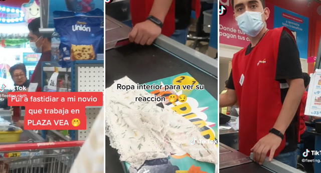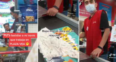 La joven aprovechó que su novio trabajaba de cajero en Plaza Vea y decidió ir a 'fastidiarlo' de una singular manera y se volvió viral en TikTok.