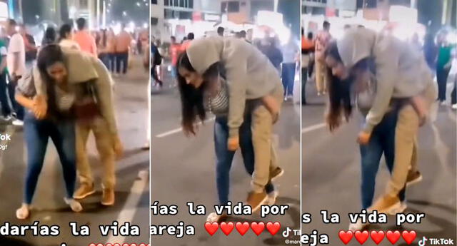 Un particular video está dando la hora en TikTok y es que en este se pude ver cómo una chica carga a su novio en la espalda porque este no podía ni pararse tras 'pasarse de copas'. La escena fue captada por un transeúnte que estaba caminando en la calle y se volvió tendencia en la red social.