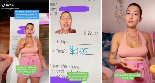 "Así que hoy mi mesa solo me dio una propina de dos dólares de una cuenta de 122, porque son de Alemania y no dan propina allí, ¿verdad?”, se le escucha al inicio del video viral.