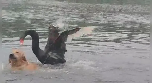 El perro de raza Golden retriever, llamado Xishi, fue captado en un video viral de YouTube, disfrutando de un refrescante baño al borde de un inmenso lago. Sin embargo, su diversión le duró muy poco, luego de ser atacado por un furioso cisne negro que se acercó con las alas abiertas y le picoteó la cabeza.