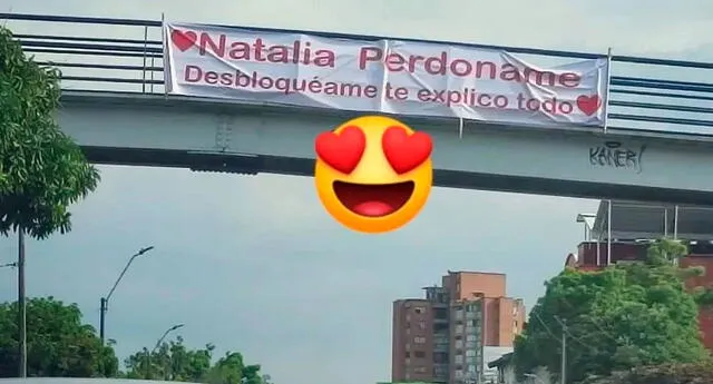 "Natalia, perdóname, desbloquéame, te explico todo": Letrero de Cali