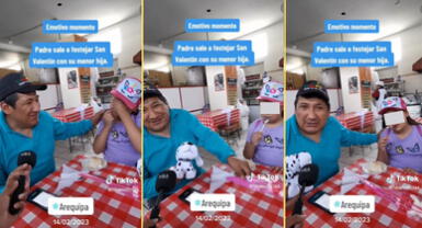 Un padre de familia ha hecho llorar a miles de usuarios en TikTok tras ser captado teniendo una 'cita' con su menor hija por el Día de San Valentín. Tal como se puede ver en TikTok, el señor arequipeño estaba almorzando con su pequeña, cuando de pronto fue abordado por las cámaras dando unas palabras que hizo llorar a todos en la red social.
