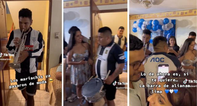 En las imágenes virales de TikTok se observa cómo el grupo de aficionados hace su ingreso en medio de los festejos y anima a todos los invitados. “Los mariachis ya pasaron de moda”, se lee en el clip.