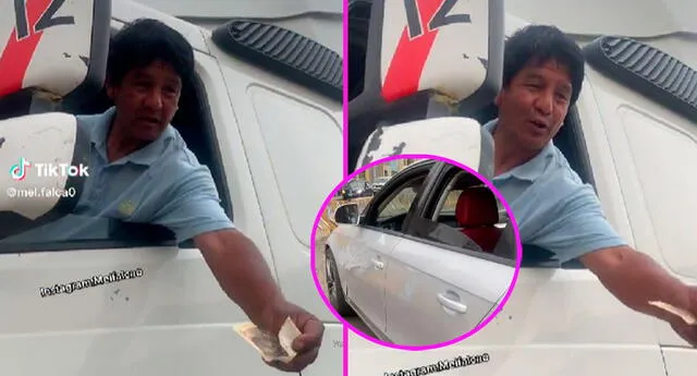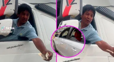 El chofer no lo pensó dos veces y lejos de escapar, como sueles hacer los conductores en un choque, decidió ofrecer algo de dinero para arreglar el vehículo. En el video viral de TikTok se puede ver al hombre sacando un billete de 20 soles para dárselo al otro conductor, pero con una condición, que le de vuelto.