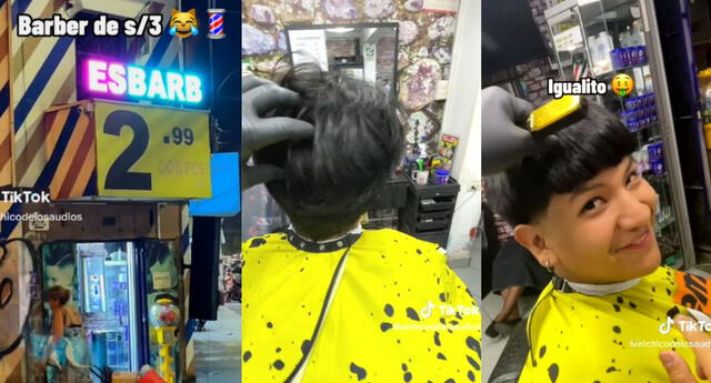 Al ver una tarifa tan económica no se resistió en acudir a esta barbería. En el clip compartido por el usuario elchicodelosaudio precisamente muestra cuando ingresa al establecimiento que tenía un letrero llamado "S/2.99 cada corte".