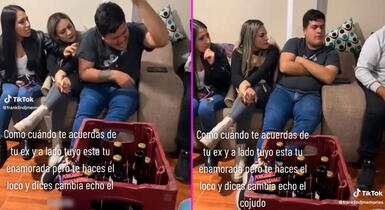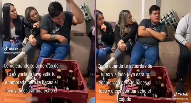 Tal y como se puede ver en el viral de TikTok, las imágenes tienen como protagonista a un joven que estaba compartiendo junto a unos amigos y su novia en una fiesta en casa. Todo parecía marchar muy bien e incluso se ve una caja de cerveza con la que estaban brindado, cuando de pronto el muchacho se puso a cantar a voz en cuello la canción ‘Quisiera gritar tu nombre’ de Armonía 10.