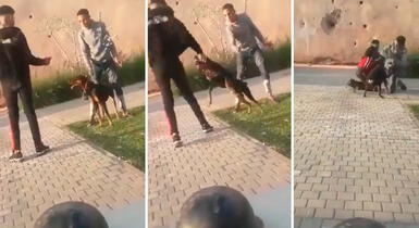 Uno de los hombres golpeó al animal en la cara, sin imaginar que el perro saltaría y se defendería. Las imágenes son virales en Twitter.