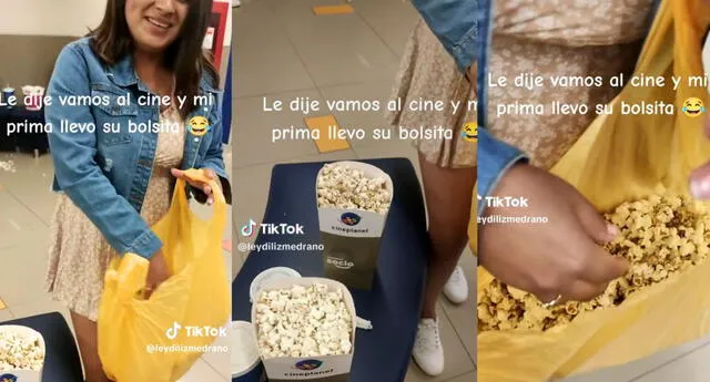Su actitud se vuelve viral en TikTok. Cada nos sorprende los usuarios con lo que captan en su vida y este fue el caso de una joven, el cual fue junto a su prima al cine a disfrutar de una buena película, sin embargo, no espera que ella para ahorrarse el combo de la confitería de local, iba a llevar su bolsa de canchita.