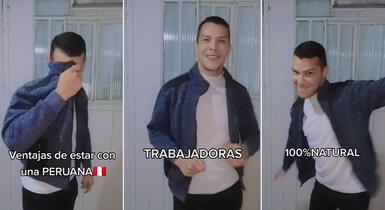 “Ventajas de estar con una peruana: son humildes, trabajadoras, cocinan rico, bailan de todo, divertidas, graciosas y lo mejor 100% natural”, afirmó en el video viral que ha logrado más de medio millón de reproducciones, casi 29 mil ‘Me gusta’ y miles de comentarios.