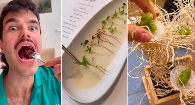 Brotes de plantas, una pizza margarita en miniatura, algodón de azúcar, fécula de papá y una “paloma cruda”, fueron algunos de los platos que el muchacho probó como parte del exclusivo menú. La experiencia del youtuber no tardó en hacerse viral en redes sociales.