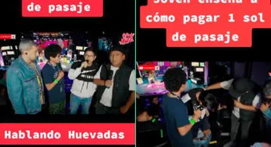 Tal como se puede apreciar en las imágenes, el joven fue entrevistado por Ricardo Mendoza y Jorge Luna. El muchacho relató todo lo que tuvo que hacer para llegar a la presentación, pero eso no era todo, pues mostraría el ‘singular truco’ para ahorrar pasaje.