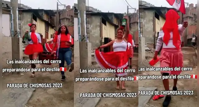 La genialidad de los peruanos para exponer divertidas ideas no deja de sorprendernos tal como se aprecia en estas imágenes que unas mujeres vestidas con colores alusivos al mes patrio organizaron de forma parodia la “Parada de las más chismosas 2023”.
