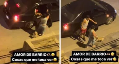 "Amor de barrio": pareja protagoniza inesperada escena en plena calle y es viral