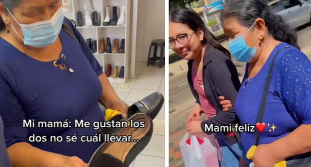 Gabriel Soria, autor del video viral, mostró cómo su progenitora tenía dos opciones de calzados para llevar a casa. No obstante, no sabía por cual decidirse, pues ambos les gustaban y a él se le ocurrió la genial idea de que su madre quedara totalmente feliz.