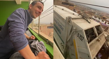 “¡Atención, amigos! Ya llegó el camión de la basura”, dijo el italiano desde el lugar, para luego empezar a mover sus manos cuando escuchaba la pegajosa música. Al parecer su asombro era grande, por lo que no dejaba de sonreír cuando miraba a través de la ventana.