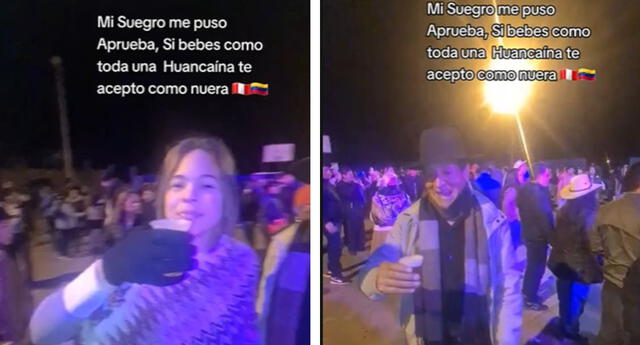 “Mi suegro me puso a prueba: ‘Si bebes como toda una huancaína, te acepto como nuera’”, colocó en la descripción compartido en TikTok que se ha vuelto tendencia en la app china. Mira aquí el clip: