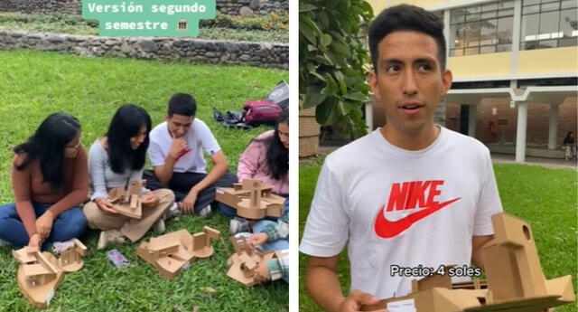 De acuerdo a las declaraciones de los estudiantes de la facultad de Arquitectura que se ven en las imágenes virales de TikTok, ellos presentaron una maqueta de cartón para presentar su proyecto. Si bien algunos indicaron que gastaron entre 7 a 8 soles, algunos indicaron que solo habían gastado 4 soles para concluir con su trabajo. Mira aquí el clip:
