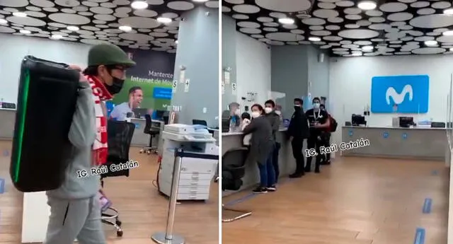 Como se puede ver en el video, el usuario, identificado como Raúl Catalán, decidió grabar el momento en el que, un joven entraba a las instalaciones de la empresa Movistar. Acompañado de un parlante grande, el muchacho va caminando por todo el lugar y de fondo sonando la publicidad de su más grande rival, Claro.