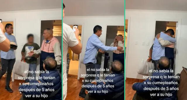 Resulta que algunos familiares quisieron sorprender al cumpleañero, quien no veía a sus hijos hace 5 años debido a que no estaba en nuestro país. En el clip se puede ver el preciso momento en que llega el muchacho y protagoniza un emotivo abrazo junto a su padre. El progenitor no evitó derramar unas lágrimas y mostrarse feliz por la llegada de su hijo.