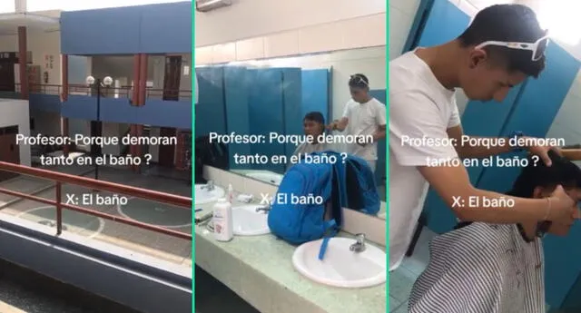 Joven se ‘recursea’ como barbero en el baño de su universidad y es viral: “A 10 soles el corte”