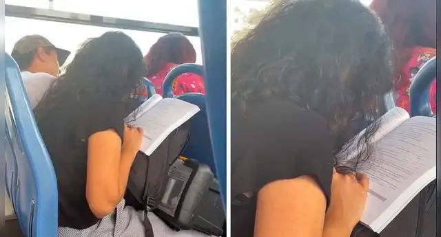 Resulta que, por medio de un video compartido en TikTok, un usuario grabó a una muchacha intentando leer en un bus, mientras el sueño le vence. Tal como se puede ver, la joven lucha contra el cansancio mientras intenta concentrarse en su lectura dentro de un transporte público en movimiento. A medida que su cabeza iba cayendo, producto de la fatiga, el cibernauta decidió grabarla y rápidamente se llenó de comentarios de apoyo para la joven estudiante.