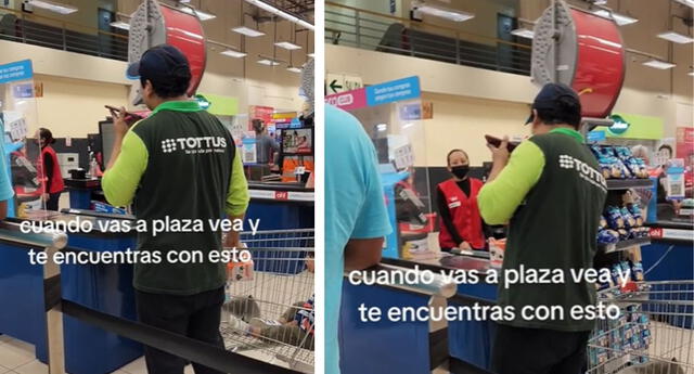 La usuaria @smcnaty mostró el preciso momento en que un trabajador de Tottus se encontraba en el interior de Plaza Vea. Rápidamente, tuvo una peculiar reacción que no tardó en viralizarse en redes sociales.
