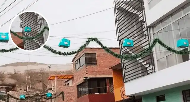 Tal como se puede ver en las imágenes virales en la app, los vecinos de San Juan de Lurigancho colocaron cajas de panetón D'Onofrio como si fueran bolas navideñas colgando de los cables que están a las afueras de las viviendas. Aquí la foto en tendencia: