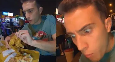 Tal como puede verse en el video compartido en TikTok, visto también en Instagram, la escena inicia en una calle hasta donde el joven de nacionalidad española llegó para probar un plato de la popular ‘tía veneno’. La persona que grabó el momento no dudó en registrar todos los detalles de esta singular demostración.