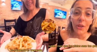 “No puedo creer que los platos sean tan grandes. ¿Se fijaron? Mira, es que estoy sorprendida. Es tremendo, es tremendo. Yo creo que esta es una esfera de, por lo menos, unos 35 a 40 cm, por ahí”, se le oyó expresar en un primer momento al ver el pollo a la brasa en el plato.