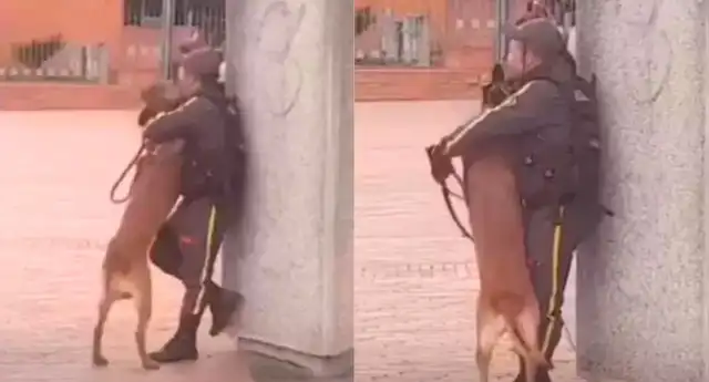 "Este guarda canino demuestra que también tiene un lado tierno", "el perro debe de querer mucho a ese señor porque a los perros no les gustan los abrazos, pero como vienen de alguien a quien ama, lo aceptan", "qué tal este par tan melosos", "qué hermosa conexión que tienen", son algunos comentarios en redes sociales.
