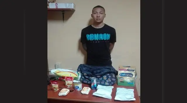 Durante el registro personal se le encontró dos bolsas de leche en fórmula, dos barras de margarina, una lata de leche condensada y una lata de bebida energizante.