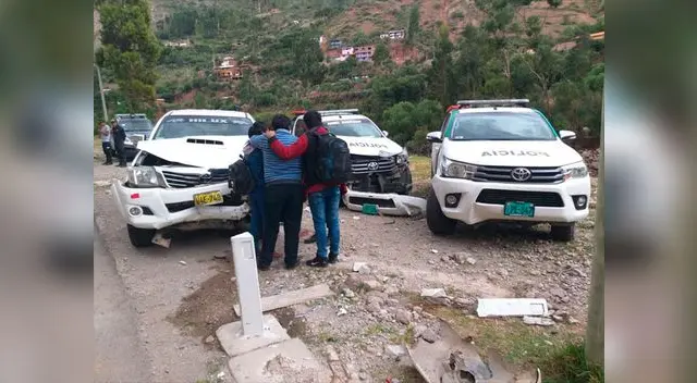 El accidente ocurrió al promediar las 5 de la tarde de vísperas para la Navidad, cuando el comerciante, Ramón Múñoz Gallegos (55), al volante de la camioneta de placa W4E 748 impactó contra los patrulleros de placa CL 22709 y CL 22122.