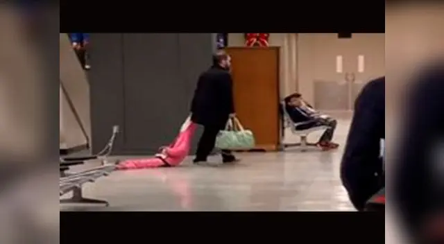 En las imágenes se ve al padre cogiendo de la capucha que su hija llevaba puesto y arrastrándola por los pasillos del terminal aéreo, mientras su hija mayor cargaba dos mochilas y los acompañaba.