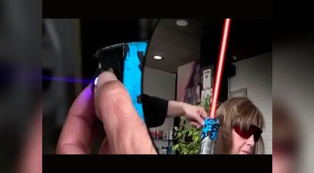 Un estilista español que saltó a la fama por cortar el cabello a sus clientes con espadas, ahora vuelva a convertirse en el centro de atención y ahora utiliza un láser para realizar sus cortes.