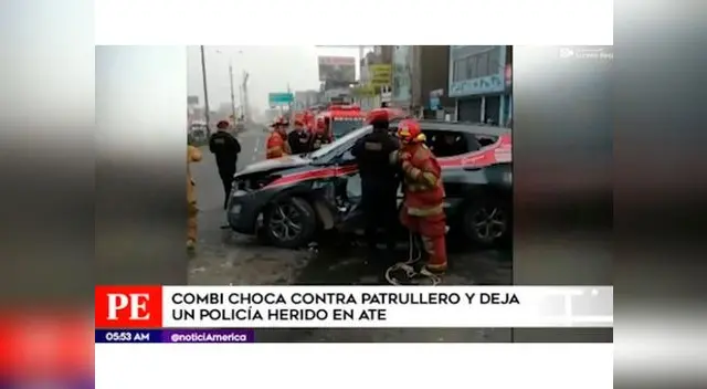 Un agente de laPolicíaNacional del Perú (PNP) resultóherido luego que el patrullero donde iba a bordo fue impactado por una combi.