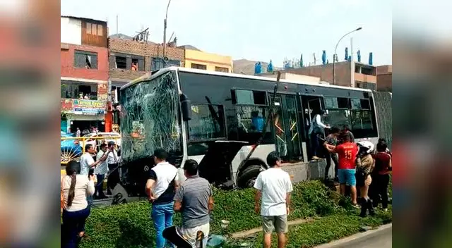 Un fuerte accidente de un bus del Metropolitano se registró esta tarde en Independencia en la avenida de Tomás Valle. De acuerdo a las primeras investigaciones el bus de transporte público chocó con un vehículo dejando al primero encima de la berma central.