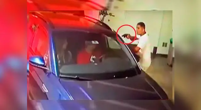 El ladrón los apunta y amenaza con la pistola. Es un momento crucial para salvaguardar sus vidas, cualquier mal reacción hubiese provocado que el delincuente dispare. Por unos instantes, el marido no accede en abrir la puerta del carro, pero finalmente accede ante la insistencia del hampón, quien golpea la ventana con el arma.