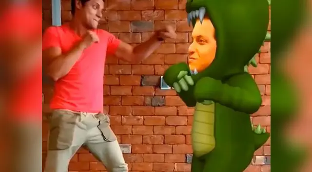 De la misma manera que un luchador de box practica sparring antes de una pelea, Gino Pesaressi logró entrenar con un compañero inusual. En esta oportunidad, el particular‘contrincante’ del ex chico reality fue su clon en 3D, el cual tenía un disfraz de dinosaurio.