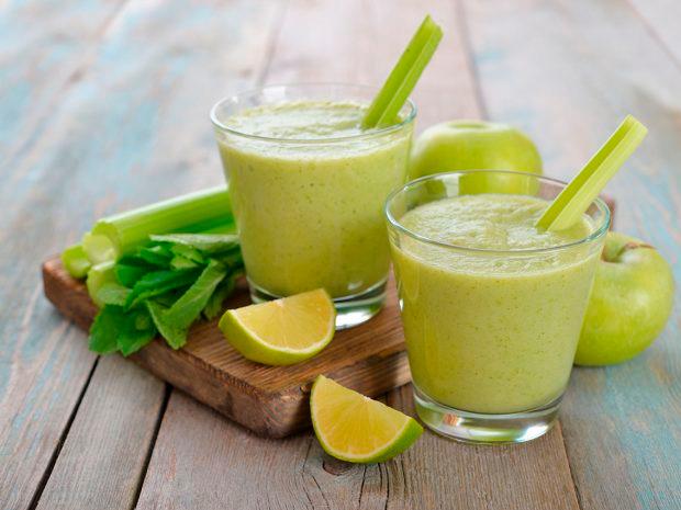 Solo requieres licuar 3 tallos de apio, ½ pepino, 3 hojas de espinaca, 8 ramas de perejil y agregarle ½ jugo de limón.