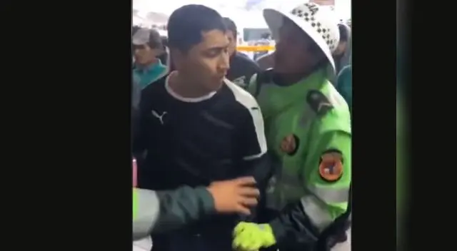 La amante empezó a defender al sujeto, impidiendo que los policías no puedan arrestarlo para llevarlo a la comisaría.